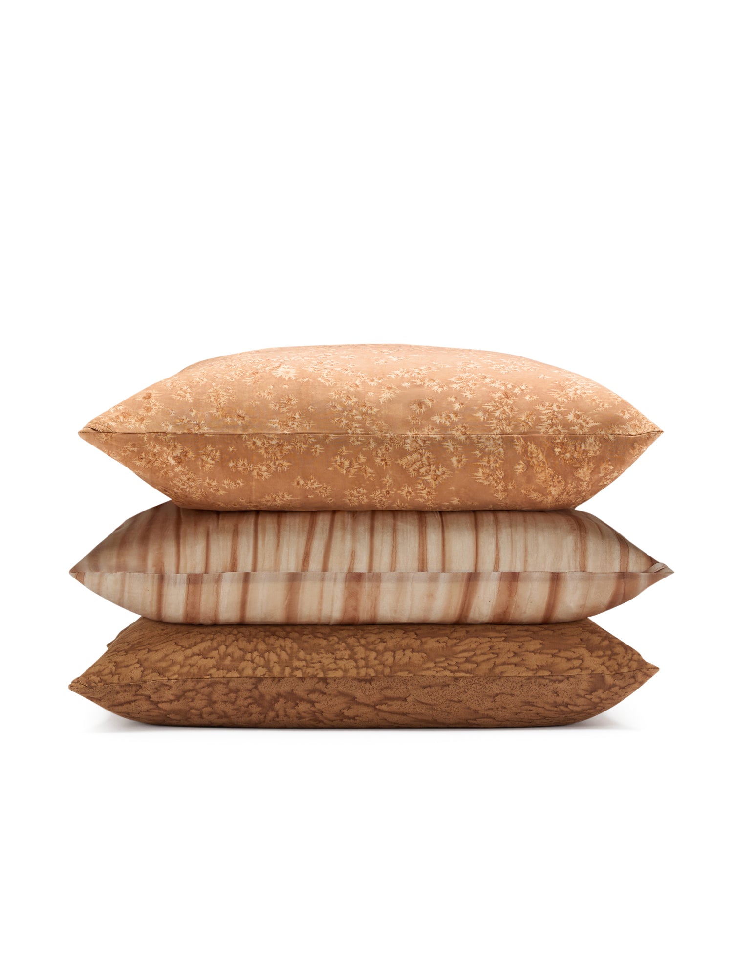 UMBER’s natural patterns are created from resist dyeing using salt. In the natural dyeing process, salt is spread on the surface and the pattern is formed according to the shape in which the salt is sprayed. Where the salt is spread, the salt absorbs the dye out which results a difference in the saturation of colour and therefore forms various irregular natural patterns on the fabric.