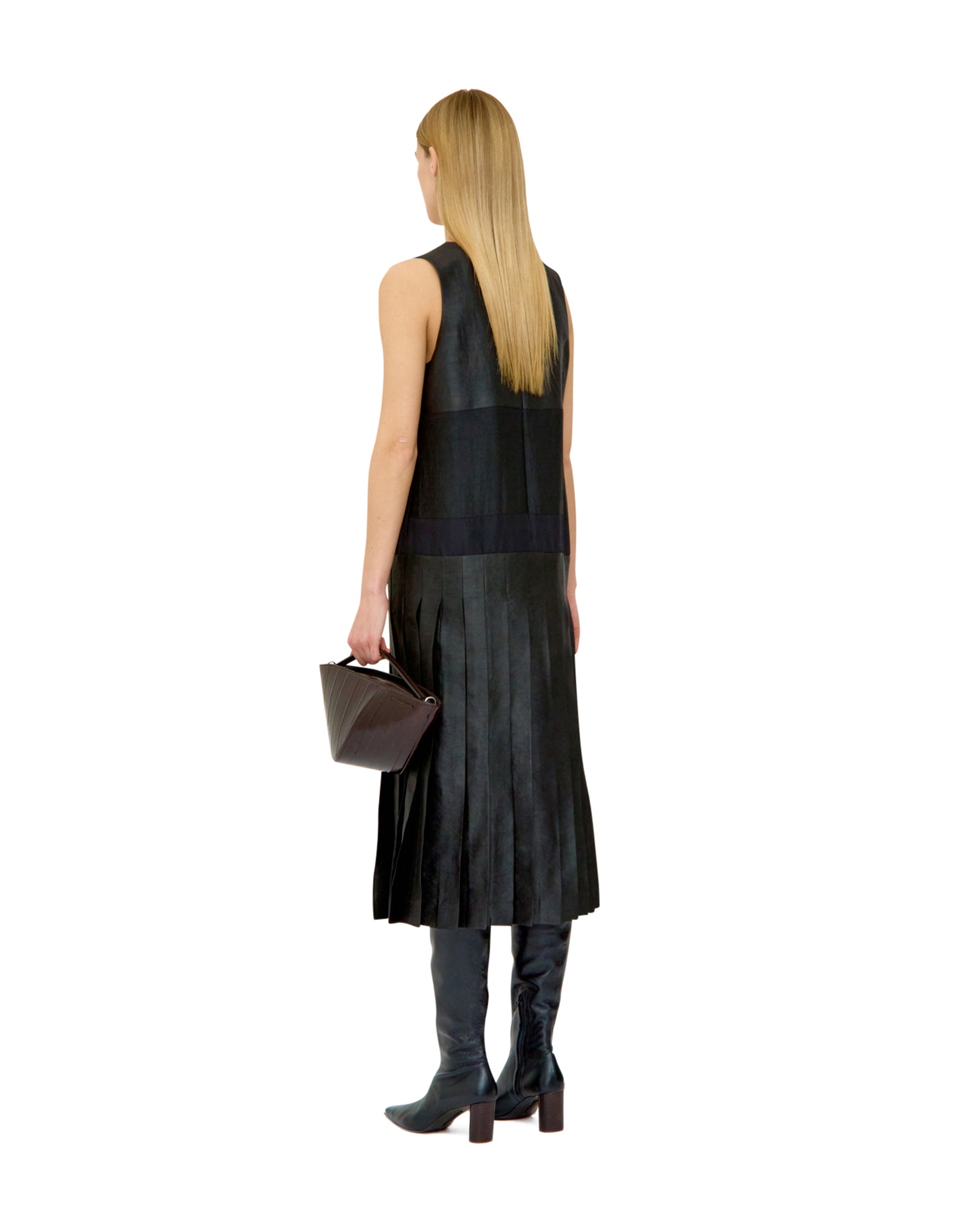 UMBER’s mud-dyeing fabric uses silk dyed with Shu-liang. The fabric is completed by repeatedly applying mud and drying it with sunlight. The fabric’s luxurious black color is implemented only after several repeated drying and more than six months of preservation. The fabric, which utilizes mud dyeing techniques, has a distinctive gloss and refined color, as well as antibacterial/insective effects and UV blocking.