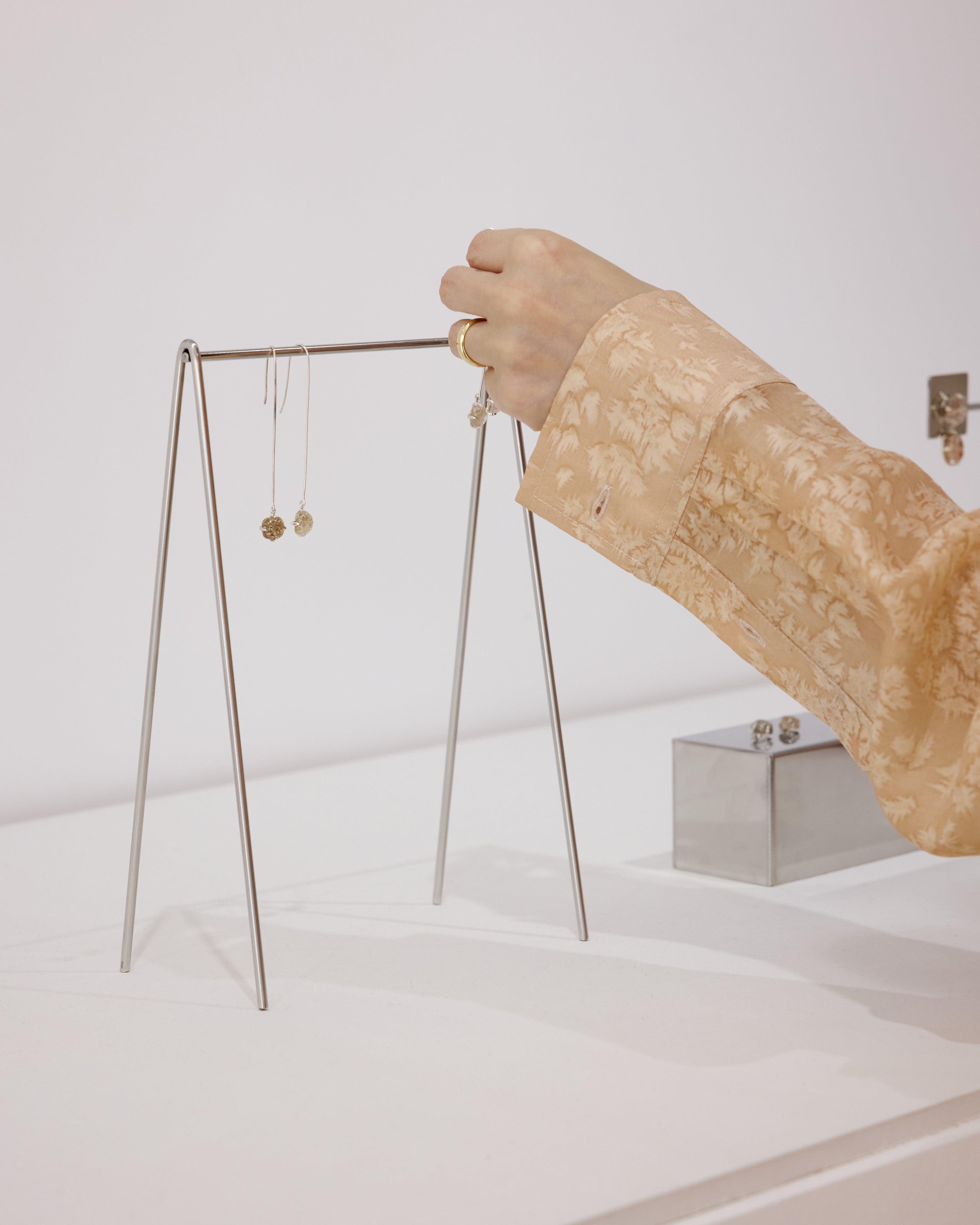 <A Conversation in Color>는 핑크 컬러의 원단으로 집의 형태를 구현한 설치 작업으로 시작됩니다. 이번 프로젝트는 브랜드의 시그니처인 브라운 톤을 확장해, 부드럽게 번져 나가는 분홍빛의 스펙트럼을 새로운 언어로 제안합니다. 텐트를 이루는 UMBER의 분홍빛 원단은 청도에 위치한 공방에서 수작업으로 제작되었으며, 나무를 활용한 자연 염색 방식을 통해 은은한 결과 따뜻한 색감을 담아냈습니다. 집 안의 공간에는 UMBER POSTPAST의 2025 가을/겨울 컬렉션이 전시되어, 관람객이 옷을 직접 보고, 입고, 체험할 수 있도록 마련되었습니다. 이번 시즌은 방발염과 진흙의 텍스처 등 다양한 염색 기법을 탐구하여, 직조와 색채, 소재가 어우러지며 만들어내는 새로운 우아함을 선보입니다. <A Conversation in Color>는 단순한 설치를 넘어, 색이 어떻게 공간 속에서 확장되고, 또 옷을 통해 경험될 수 있는지를 보여주며, UMBER POSTPAST가 구축해 나가는 시각적 언어를 한층 확장해 나갑니다.