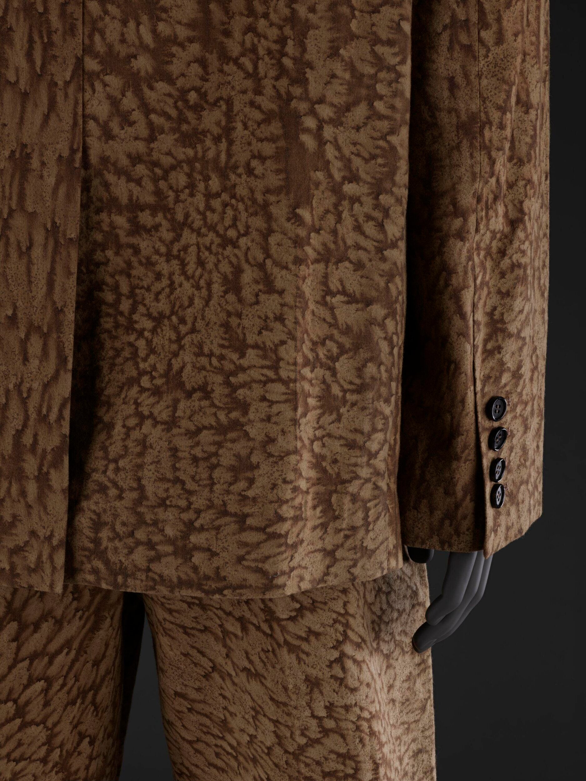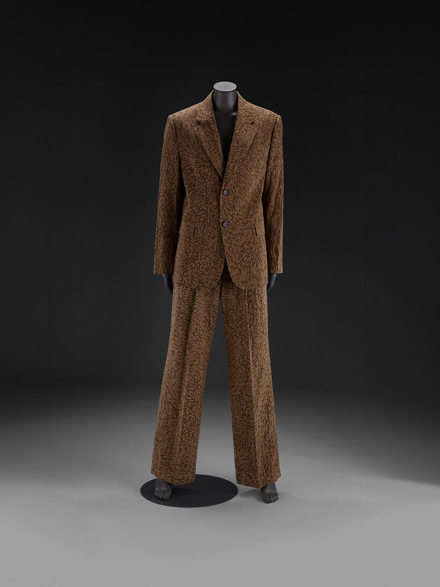 저희 박물관에서는 “한국에서 온 사물은 전부 한국이라는 한 장소에서 온 것”이라고 생각하곤 하는데, 이는 사람들은 한국 내에도 서로 다른 지역이 존재한다는 점을 제대로 이해하지 못하기 때문이에요. 그래서 요즘 저는 지역별 컬렉션을 더 확장하고자 노력하고 있습니다. 조성민 디자이너의 컬렉션을 살펴보던 중, 마침 ‘소금꽃’ 시리즈가 나왔더라고요. 특히 수트를 포함한 작품들을 봤을 때 매우 현대적이었습니다. 당시 레오파드 프린트가 다시 유행하기 시작하던 시기라, 염색 패턴이 일종의 동물 무늬 같기도 했어요. 저희 컬렉션에서도 이런 작품을 수집하려고자 했는데, 감물 염색한 직물은 대부분 제주도에서 온 것이었어요. 같은 기법을 사용하는 다른 지역이 있다는 사실을 보여줄 수 있다는 점이 흥미로웠습니다. 조성민 디자이너가 설명했듯이, 토양과 기후 때문에 제주도에서 나오던 것과는 다른 색조를 띱니다. 저한테는 이런 지역적 특성이 흥미로웠어요.