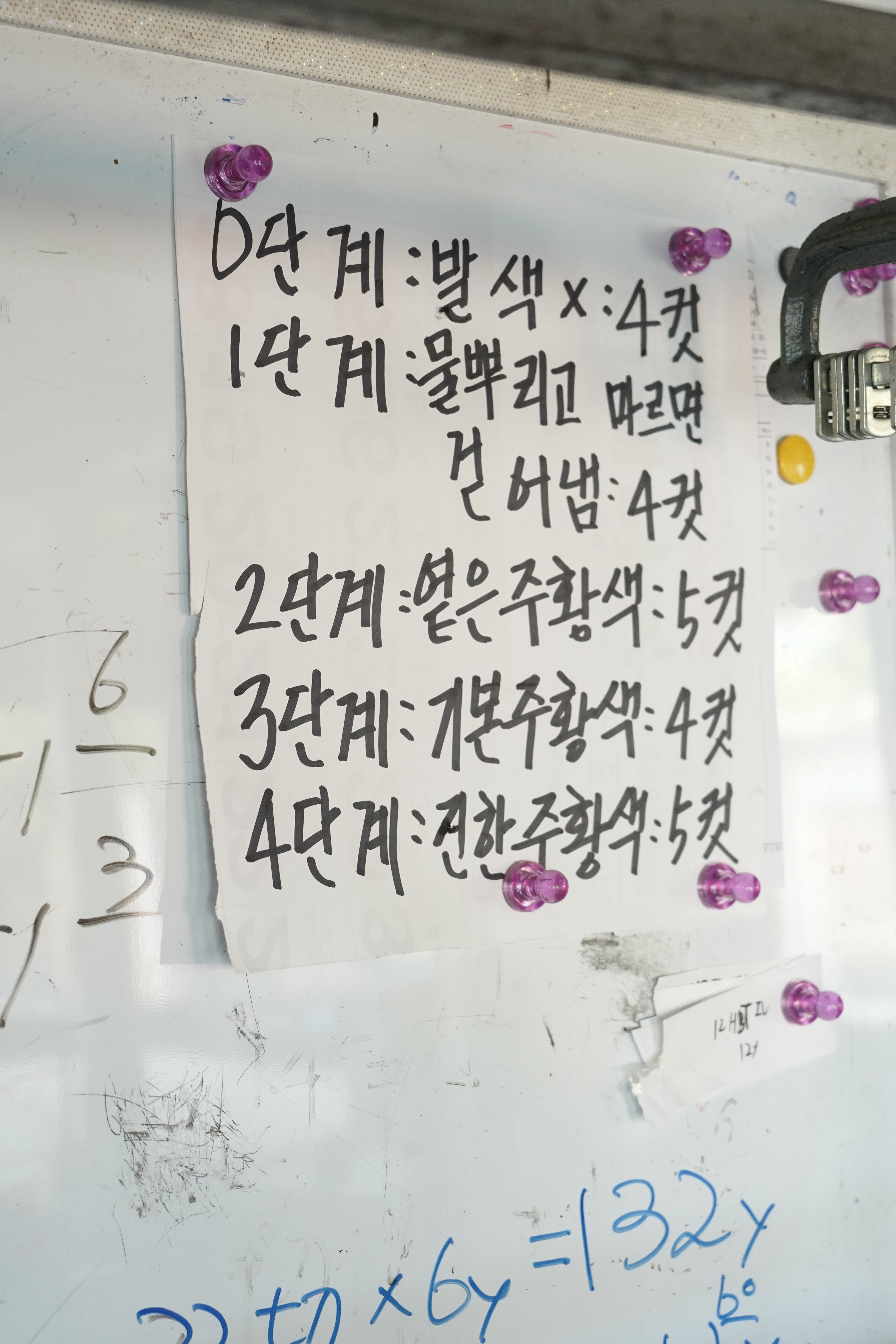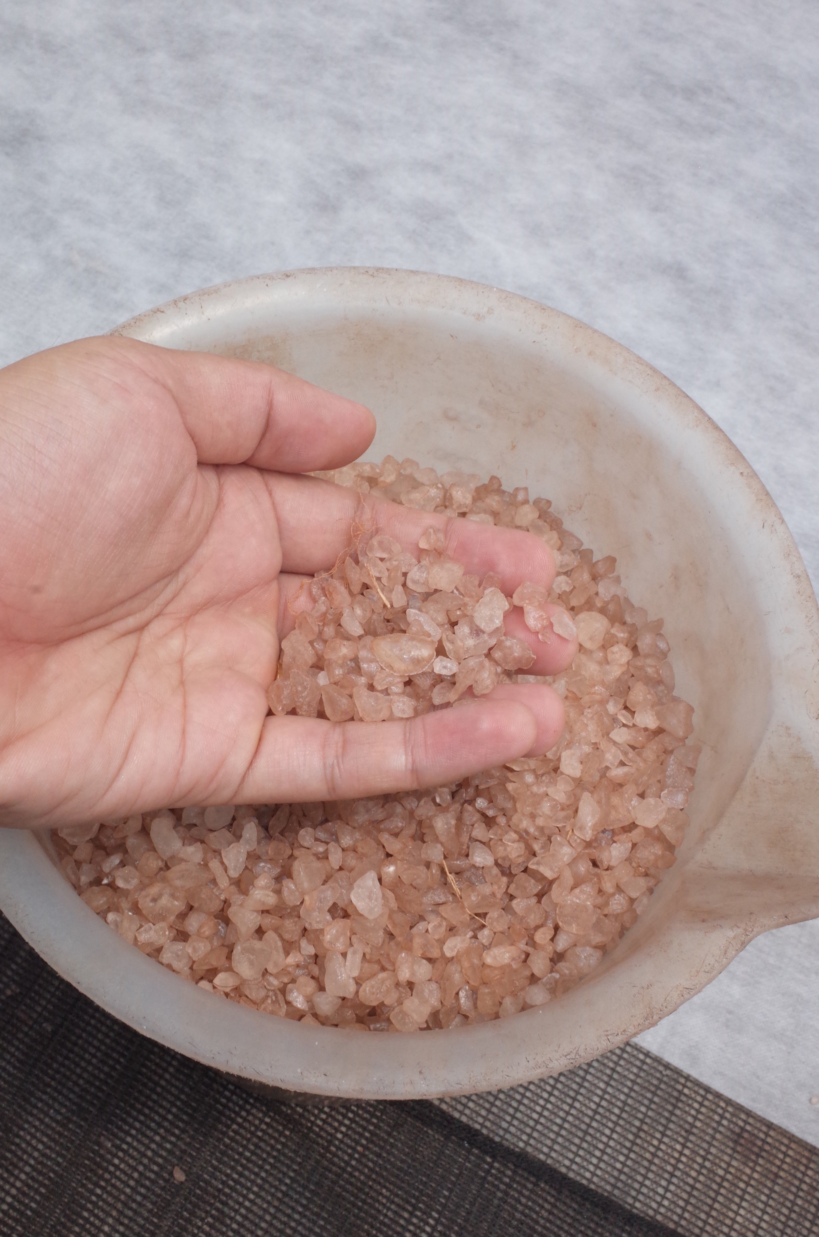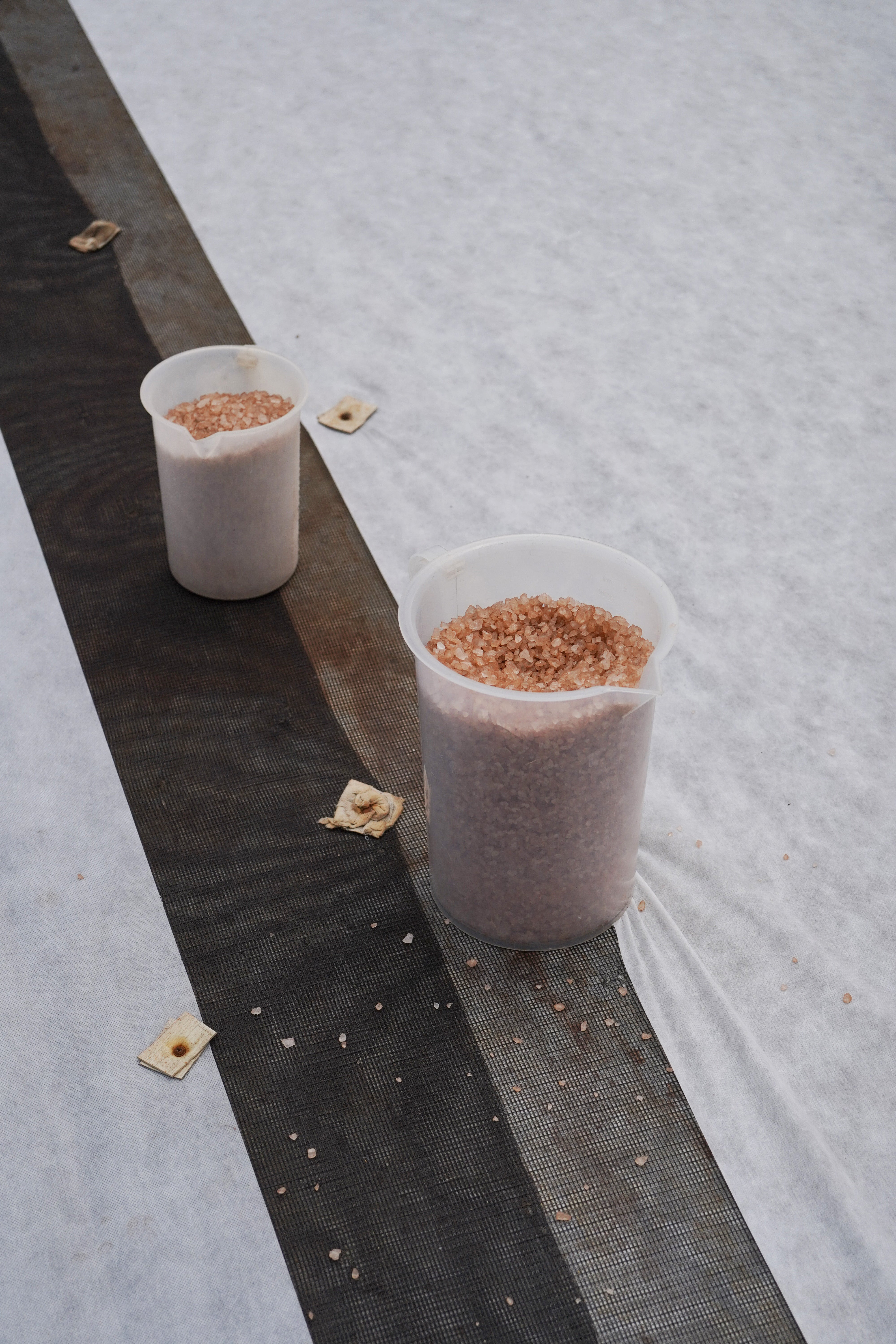 조성민: 초등학교, 중학교 다닐 때 집에 와서 소파에 이렇게 누워 있잖아요. 그때 햇빛이 들어오면 자연광에 쿠션의 씨실, 날실이 보였어요. 그걸 보다 보면 왼쪽에 있는 꽃무늬가 조금 아래에도 똑같이 시작되는 게 보이고요. 실은 이렇게 짜이는구나, 반복 패턴은 이렇게 되는구나, 이런 인식을 초등학교 때부터 자연스럽게 했어요. 밥 먹다 커튼을 보면서 A 모양 꽃이 있고 중간에 B 모양 꽃송이가 있는 게 눈에 띄는데, 이렇게 바꿨으면 더 예쁘겠다, 뭐 이런 생각을 하면서 자란 것 같아요. 정경옥: 땀이 후드득 나도 자연 염색을 하는 일이 좋아요. 날 좋은 날 새는 지저귀고 온 산천초목이 불그스름하게 물들어가는 게 보이거든. 원단이 바람에 펄럭거리면 마음의 평화가 와요. 얼마나 아늑하고 기분이 좋은지. 이게 천당이다 싶을 정도로. 참 평화를 느껴요. 김대균: 자연 염색을 접하면 사람들이 자연히 순수해져 버려요. 남한테 뭐 해코지할 일도 없고, 그냥 편안해지니까요. 잔잔하게 그냥 흘러가는 거예요. 정경옥: 일하면서 내가 자연의 일부가 되는 것 같을 때가 있어요. 어제가 오늘 같고 오늘이 내일 같고, 그저 동화되는 기분인데 참 평화롭고 즐겁거든요. 천을 이래 늘어놓고 마트라도 다녀오면 색깔이 또 달라져 있어요. 불그스름하던 게 더 불거지고. 이건 우리 인간이 하는 일이 아니잖아요. 자연이 하는 거라 참 신비롭기도 하고 또 어려운 점이기도 하죠. 비가 오면 못 하는 일이니까요. 장마 오고 날씨 흐리면 하고 싶어도 못 해요. 암만 급하다고 해도 비 오고 일조량이 안 따라 주면 못 해요. 해주고 싶어도 우리 권한 밖의 일이라 어쩔 수가 없어요. 김대균: 자연 염색은 자연이 해 주는 거야. 이제는 브랜드에서 주문할 때 이런 조건을 알고 계절마다 일조량이 달라서 색도 톤도 다른 걸 알죠. 소금 염색은 처음 맞춰 보는 거니까 이제 서서히 알게 될 거예요.