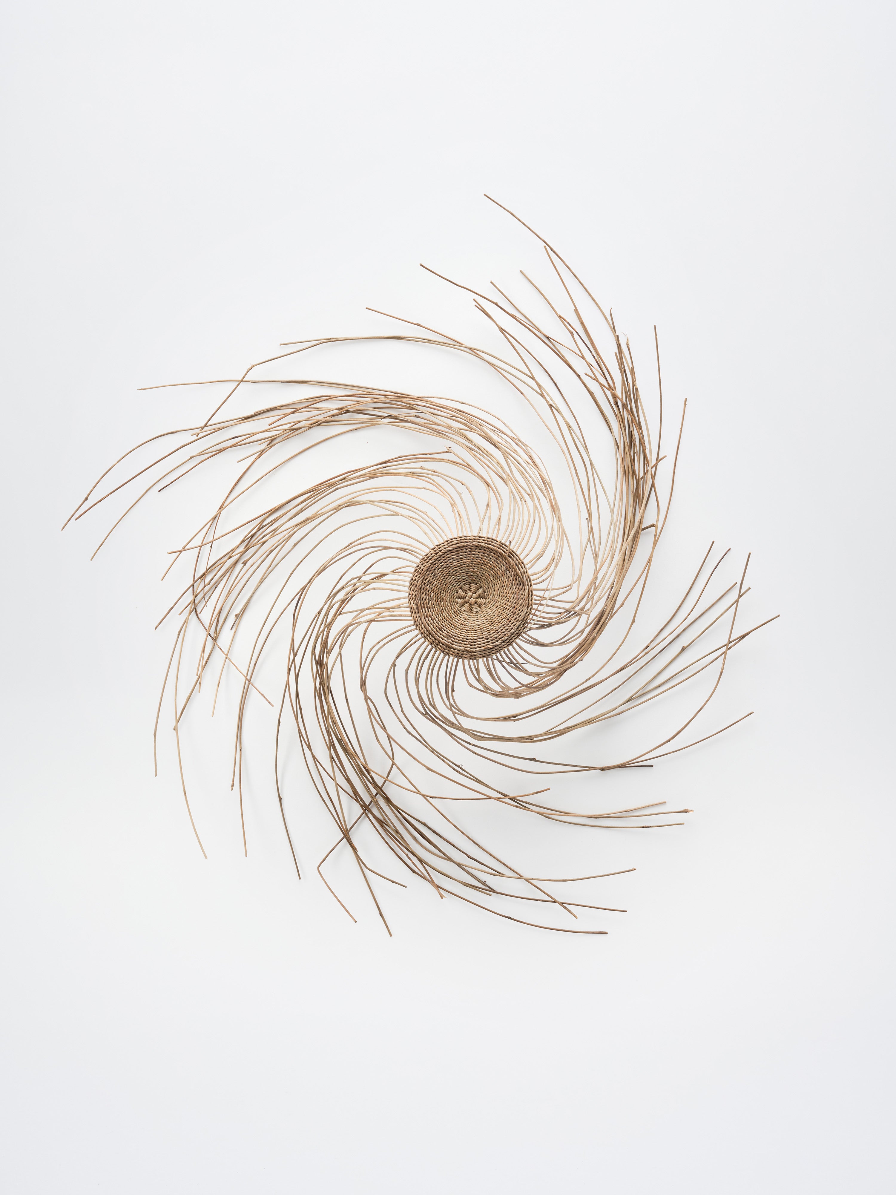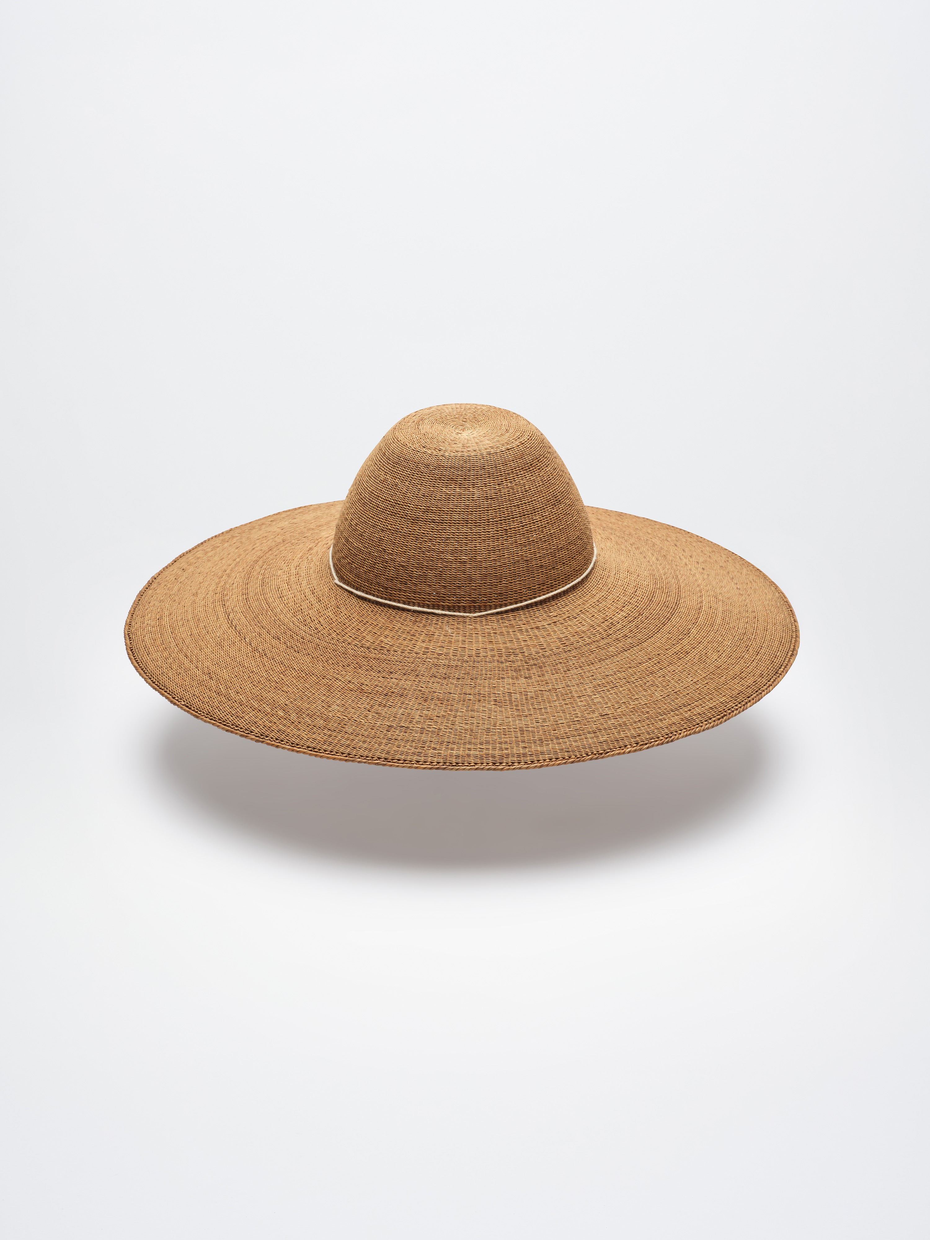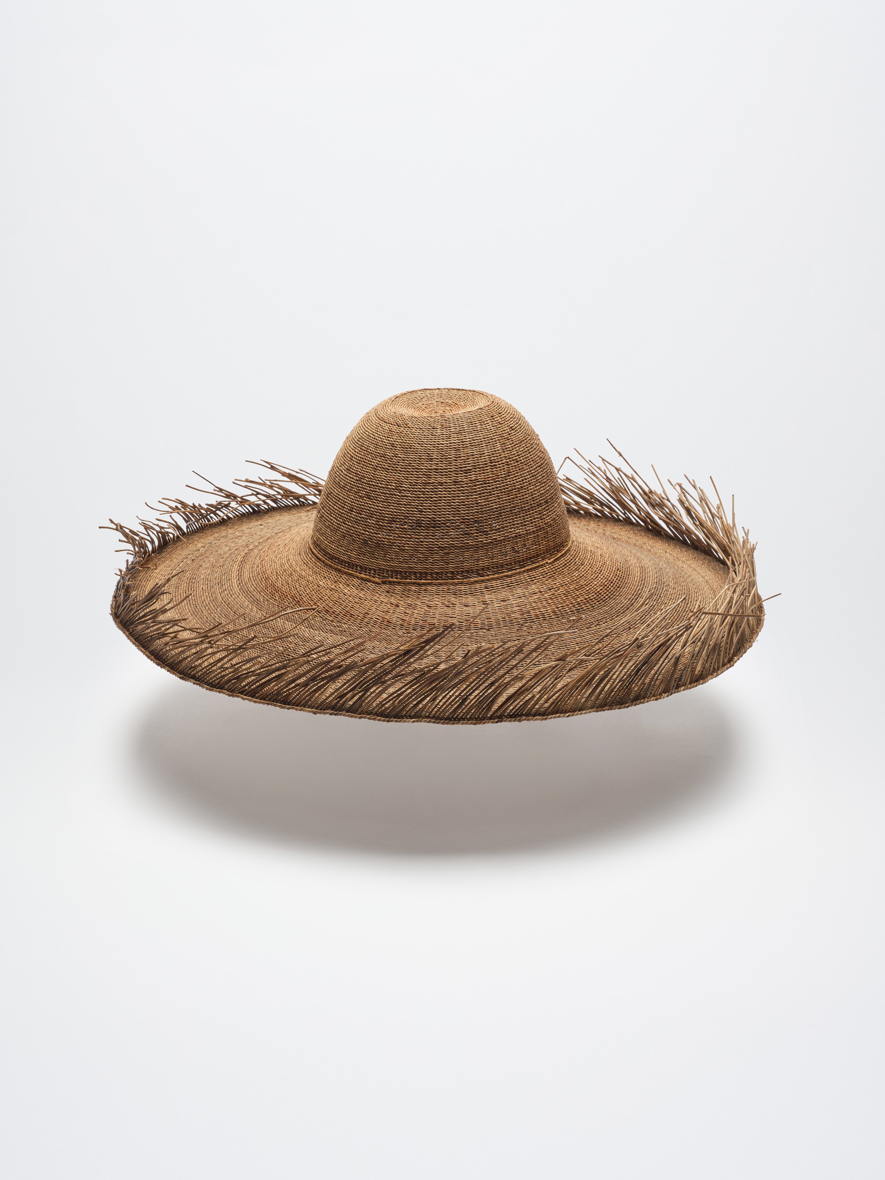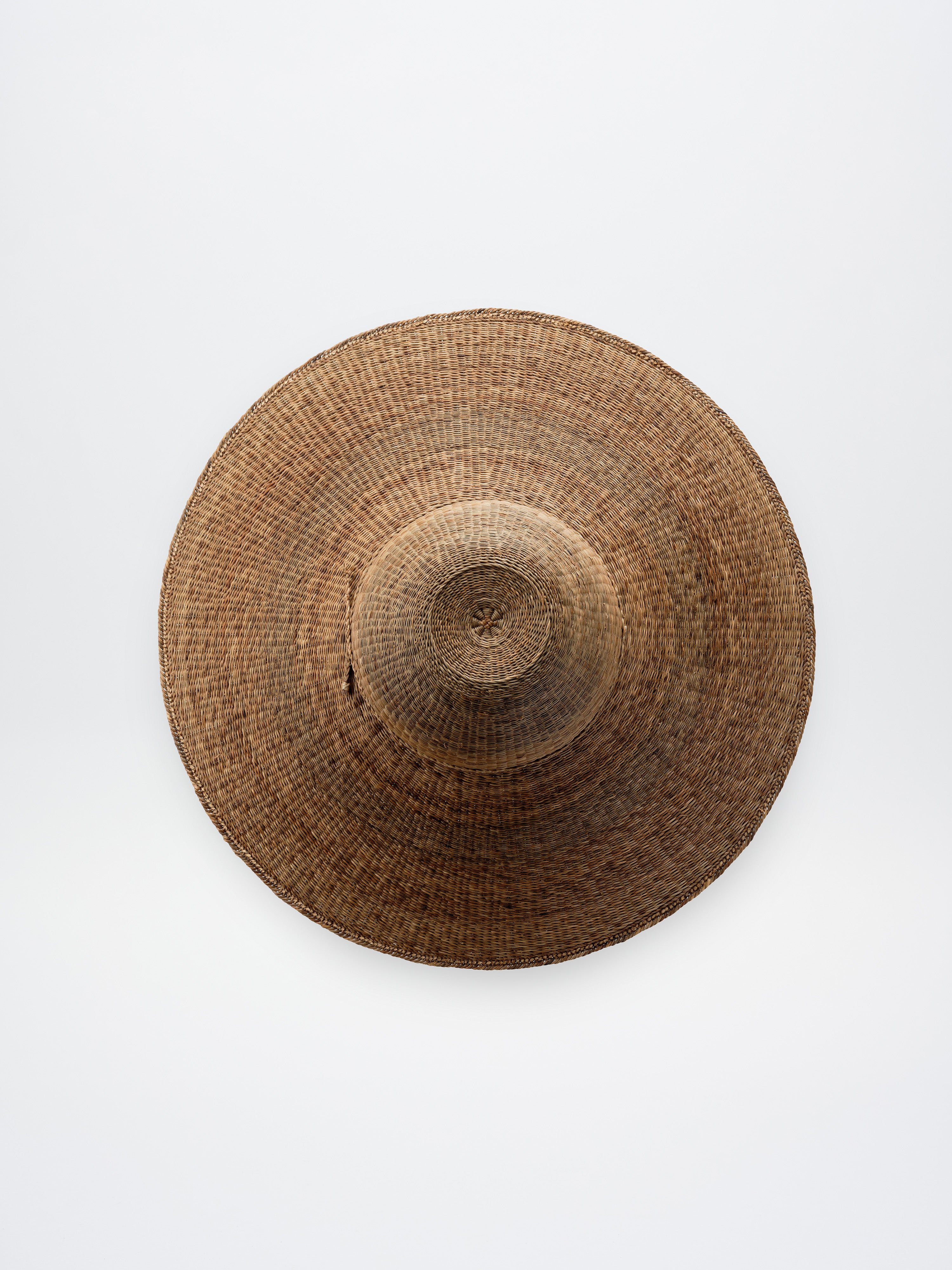 The making of jeongdong beolrip begins with finding the stems in the mountains. Finding the stems is a treasure hunt. They aren’t found in a fixed location. We search for them in the oreum and gotjawal in the mid-mountain region of Hallasan. We have to search for it while carrying the finds, otherwise we lose them in the wild. Then, when we return home, we spread them out neatly on the thatch or in the front yard and leave them there for two or three months. We let them be exposed to the sunlight and night dew, but away from rain, and they turn a rich brown. To weave a beolrip, the dried jeongdong stems must be soaked in water. In summer, we soak them for about five to six hours; in winter, for about eight. Then we trim the stems. Using a fishing net, carefully remove all the fine hairs and knots, working against the grain. Next, sort the stems into large, medium, and small sizes, or thick and thin. The first step is to weave the ‘crow’s cushion’ for the crown of the hat. In Jeju dialect, starfish are called crow’s cushions, and the crown resembles them. Around the crown, we then weave the flat part called jeolbeon. It’s named after the Jeju rice cake, which resembles it in size and shape. The jeolbeon I wove has a slightly concave profile. I made it indented because I was inspired by the White Deer Lake on top of Hallasan. After weaving the jeolbeon, we move on to weaving the mang, the part where the head goes. Next, we weave the canopy, called cheon in Jeju dialect, to block out sunlight and finish with the bawi dolim twist, bending the remaining stems upwards. Each boundary between different parts is woven with four stems over one. Cutting the remaining stems also requires careful control of force. If you make a mistake, you could end up cutting the entire piece, so you have to be careful. A common beginner’s mistake. Once you start weaving, you have to weave for three days and then let it dry because the stems soften or spoil if you don't. Even if you work quickly, it takes one to two months. It took me three months, from September to December, to create a jeongdong beolrip back in 2023.