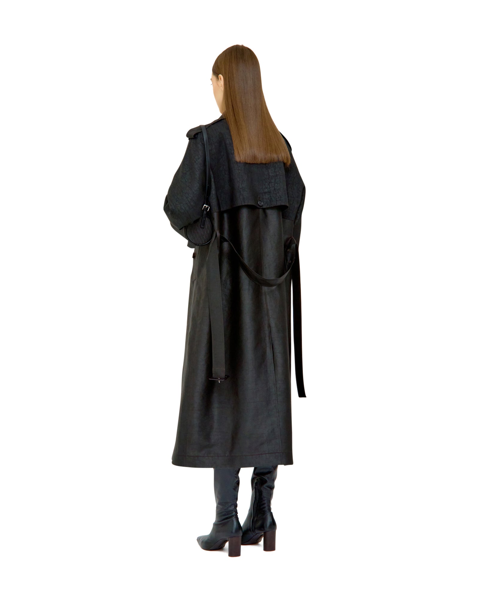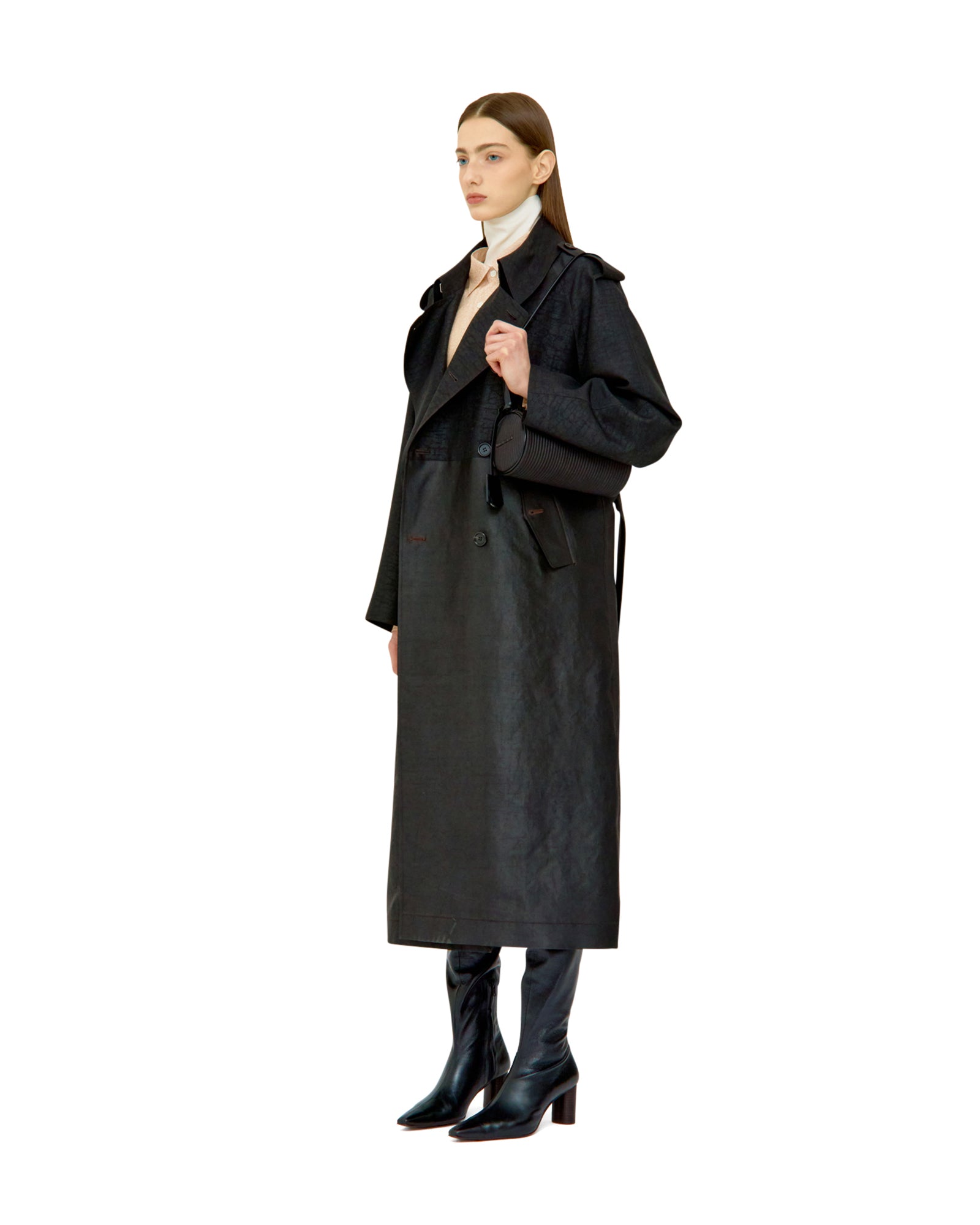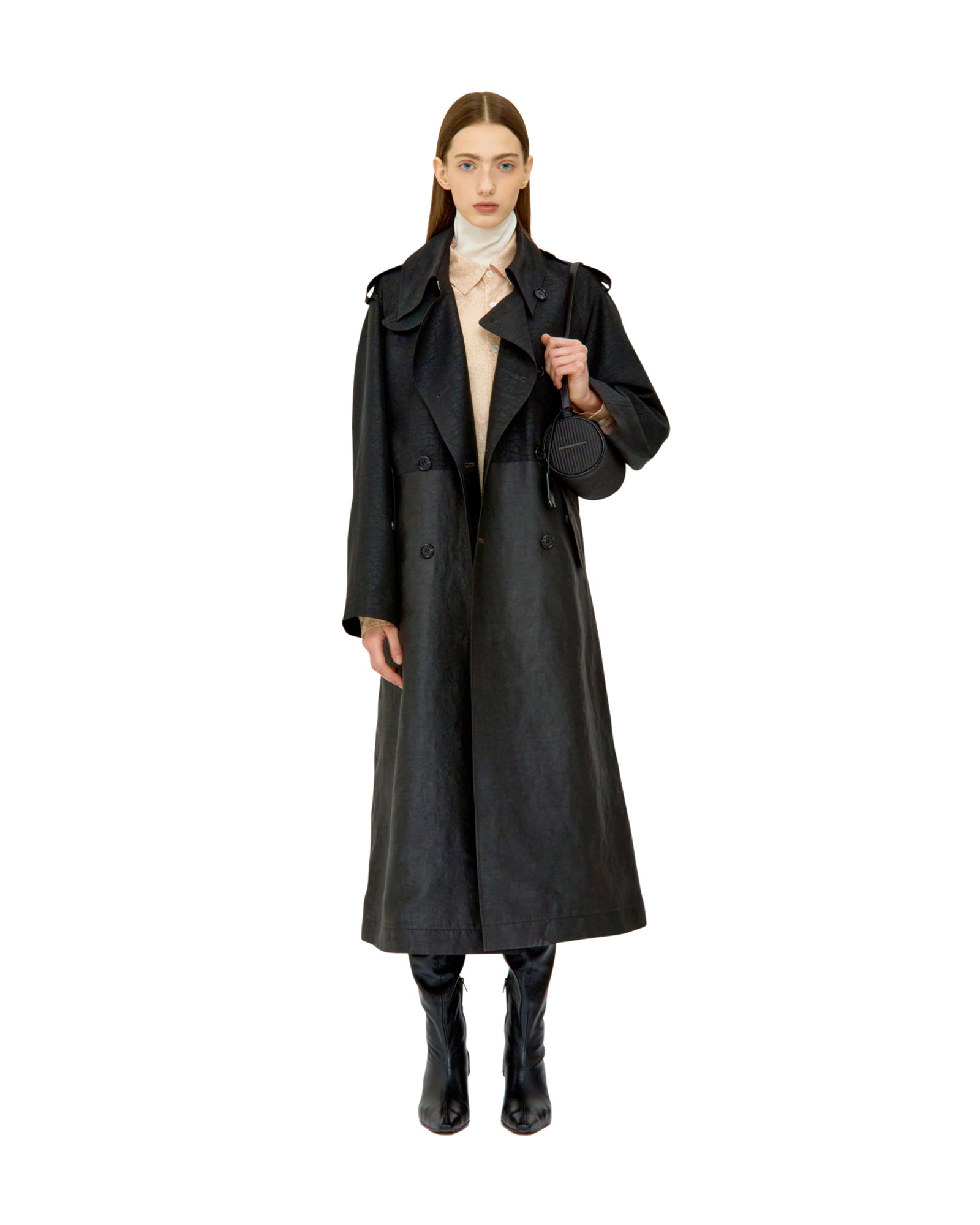 • 더블 브레스트의 래글런 소매 롱 트렌치 코트