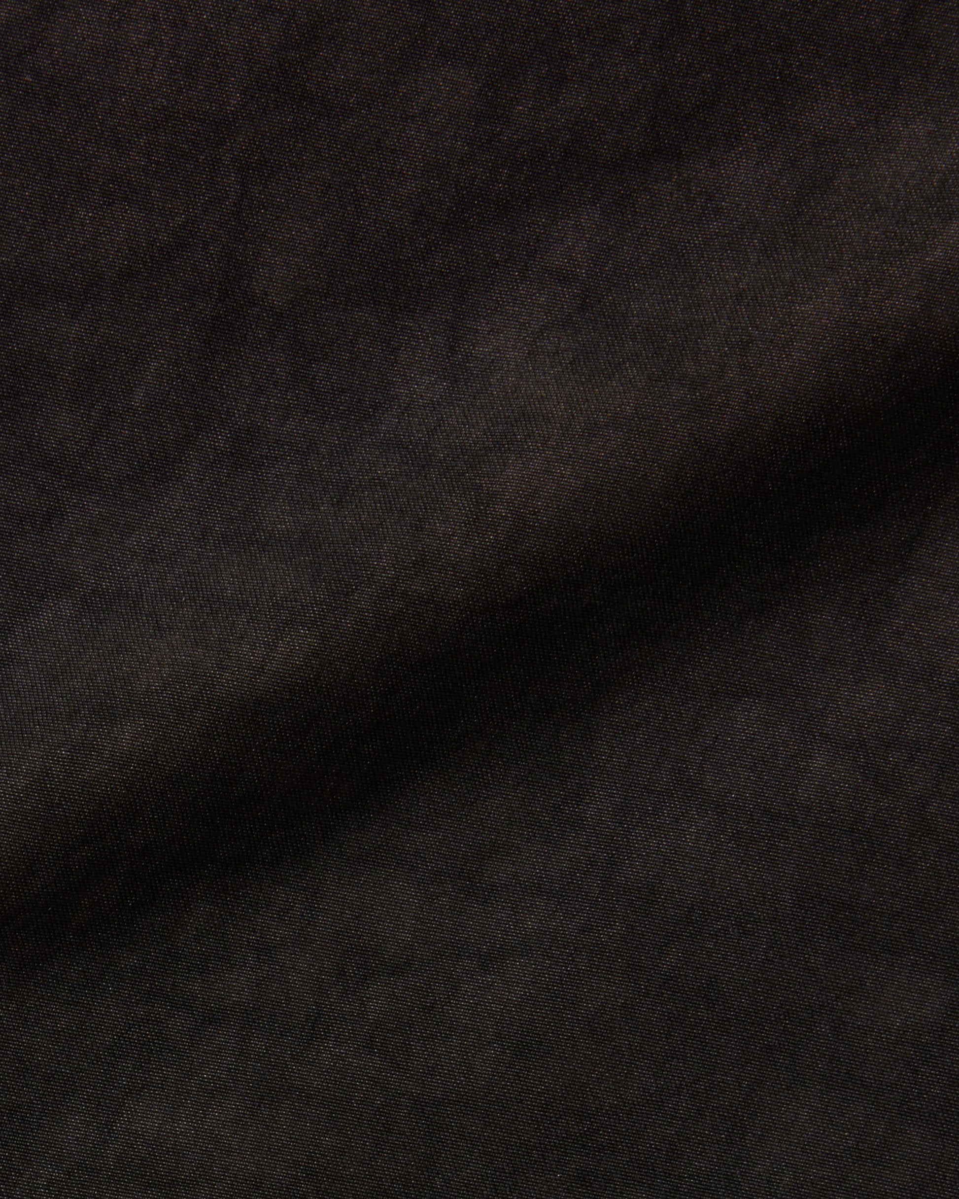 UMBER’s mud-dyeing fabric uses silk dyed with Shu-liang. The fabric is completed by repeatedly applying mud and drying it with sunlight. The fabric’s luxurious black color is implemented only after several repeated drying and more than six months of preservation. The fabric, which utilizes mud dyeing techniques, has a distinctive gloss and refined color, as well as antibacterial/insective effects and UV blocking.