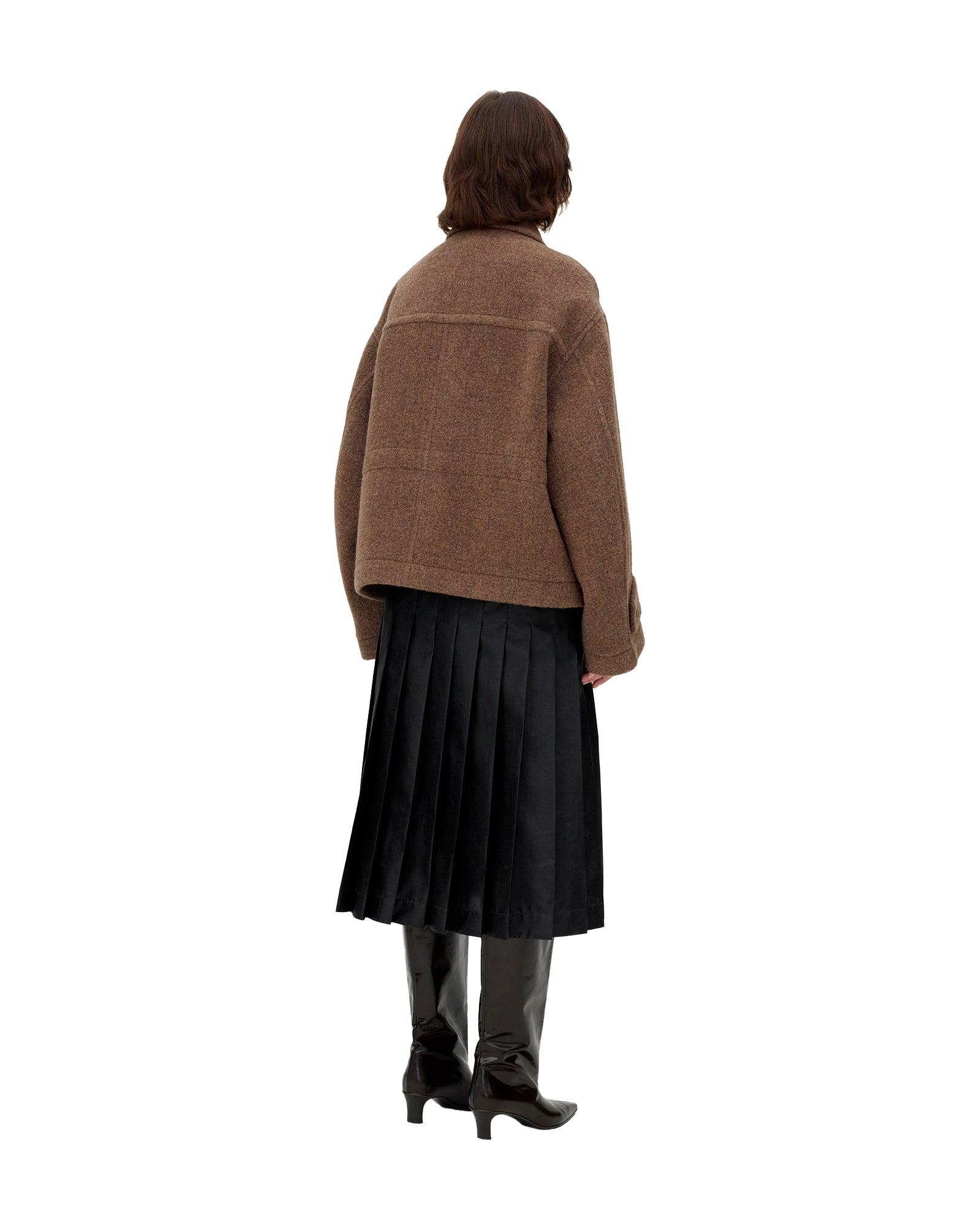 UMBER 컬렉션의 대표적인 디테일인 옻칠은 한국 장인 정신의 산물입니다. UMBER의 모든 금속 단추와 토글은 한국 전통 옻칠 기법을 사용하여 만들어져, 각각 다른 색상의 광택을 표현하여 고급스러움을 자아냅니다.